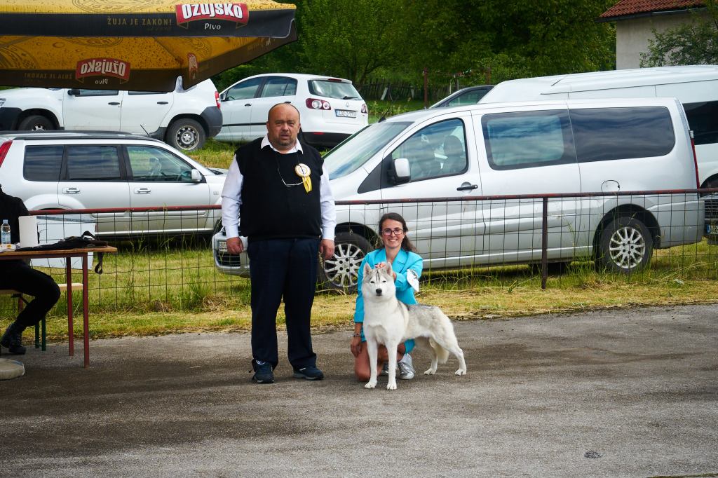 đș Chaya đș : 3x 1er Excellent, 3x CAC, 1x CACIB, 3x meilleure femelle et 3x meilleur de race = meilleur husky de l’expo BOB => CHAMPION of Bosnia et… GRAND CHAMPION of Bosnia ! Notre 1er Grand Champion Ă la maison. Ce dernier Cacib la fait aussi Championne INTERNATIONALE !!!
